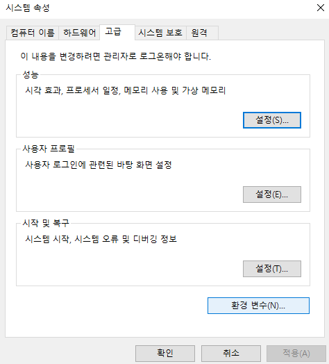 3. 그 후 환경변수 버튼을 클릭해줍니다